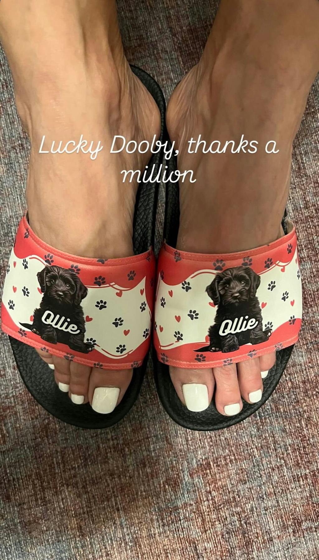 These Lucky Dooby slides are the best! Super comfy and they got Ollie’s face spot on. I’m obsessed—thank you so much!